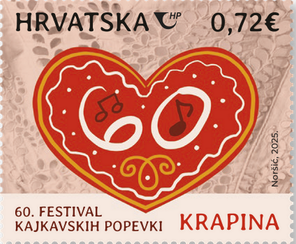 Hrvatska pošta priključila se obilježavanju 60. obljetnice kontinuiranog održavanja Festivala kajkavskih popevki „Krapina“ izdavanjem prigodne marke koja će biti u optjecaju od 8. rujna. Nova marka rad je samoborske dizajnerice Ariane Noršić. Motiv na marki nominalne vrijednosti 0,72 eura detalj je čipke svojstven narodnoj nošnji Hrvatskog zagorja i licitarsko srce s brojem 60 koji označava festivalsku godišnjicu. Marka je otisnuta u 25.000 primjeraka u arcima od 20 maraka. Izdanje, koje prati i prigodna omotnica prvog dana (FDC), dostupno je od 8. rujna u poštanskim uredima i na www.epostshop.hr.