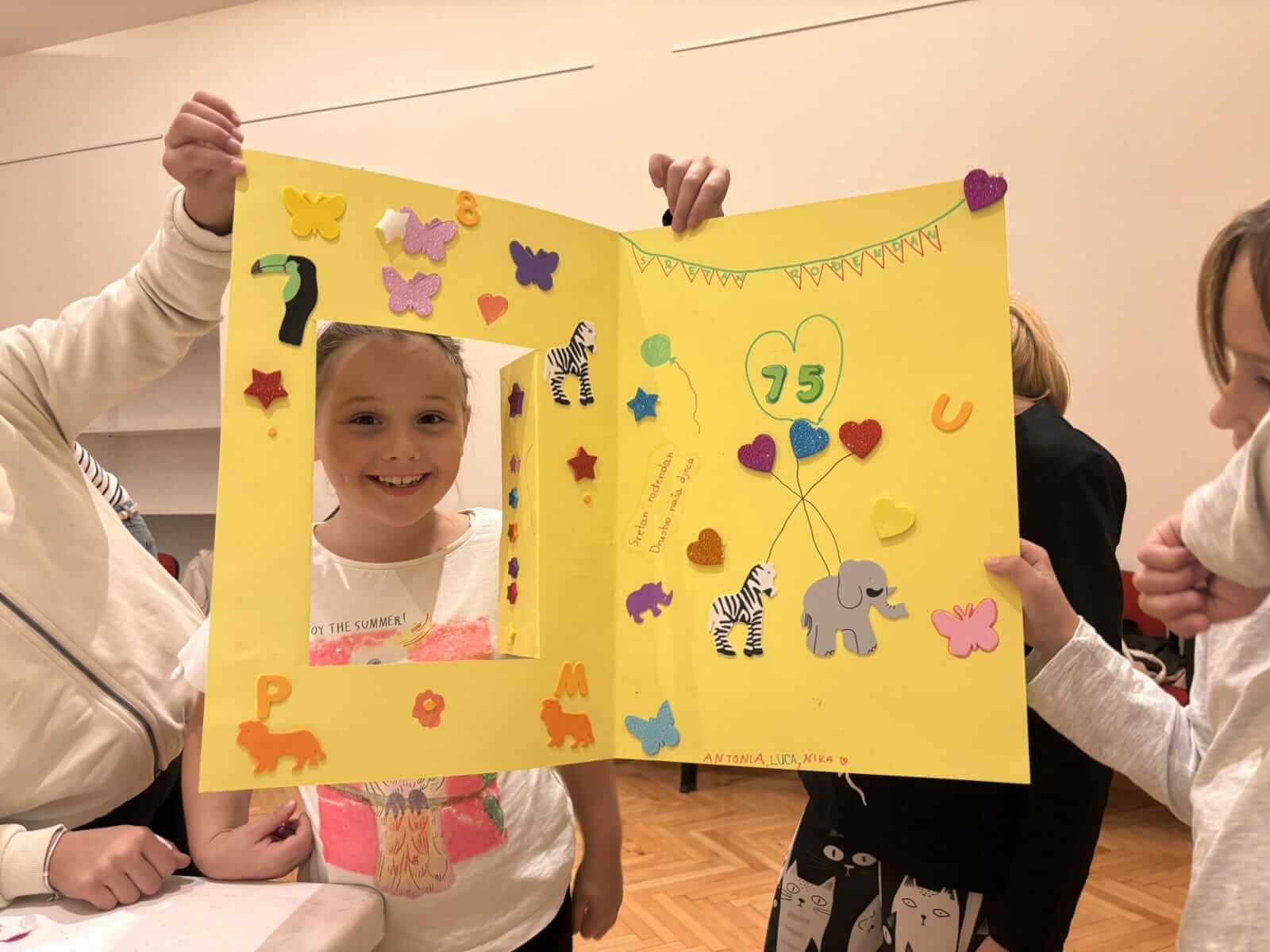 U petak, 10. listopada, u Klavir sali održana je kreativna radionica „Čestitka za rođendan“, posvećena 75. godišnjici Saveza društava „Naša djeca“ Hrvatske. Djeca su izrađivala maštovite čestitke i na taj način izrazila zahvalnost Savezu koji desetljećima radi na promicanju dječjih prava i dobrobiti.