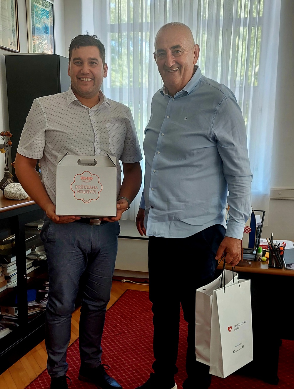 U četvrtak, 31. srpnja 2025., općinski načelnik Blata Jurica Petković ugostio je u svojem uredu Dragu Pletikosu, predsjednika Udruge proizvođača Drniškog pršuta i poznatog proizvođača tog zaštićenog delicija.