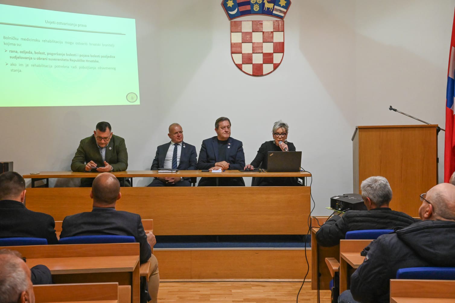 O pravima hrvatskih branitelja govorila je Eleonora Pavlović iz Ministarstva hrvatskih branitelja, koja je detaljno predstavila postojeće mjere i mogućnosti. Pojasnila je postupke ostvarivanja prava te ukazala na novosti i planirane aktivnosti usmjerene na dodatno jačanje položaja branitelja.