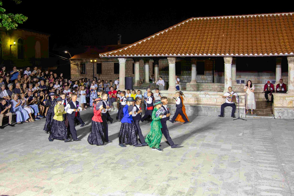 Nakon nastupa gostiju i djece, uslijedio je Blatski tanac u izvedbi članova Viteškog udruženja Kumpanjija. Ples za parove iz 17. stoljeća, uz autentične narodne nošnje i nakit koji se prenosi s koljena na koljeno, prikazao je eleganciju, dostojanstvo i simboliku odnosa muškarca i žene u blatskoj tradiciji.