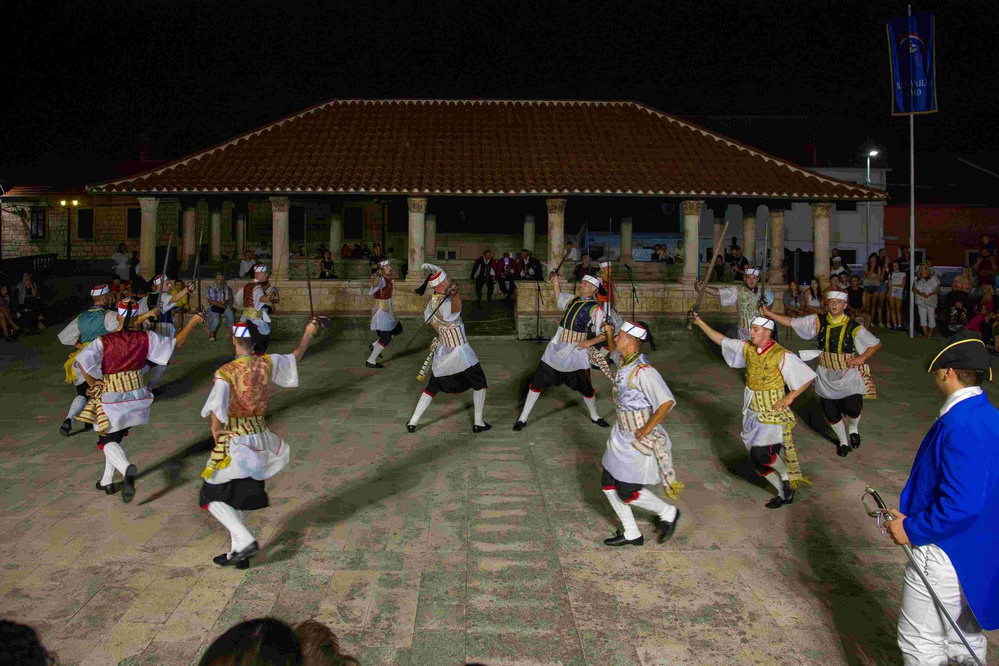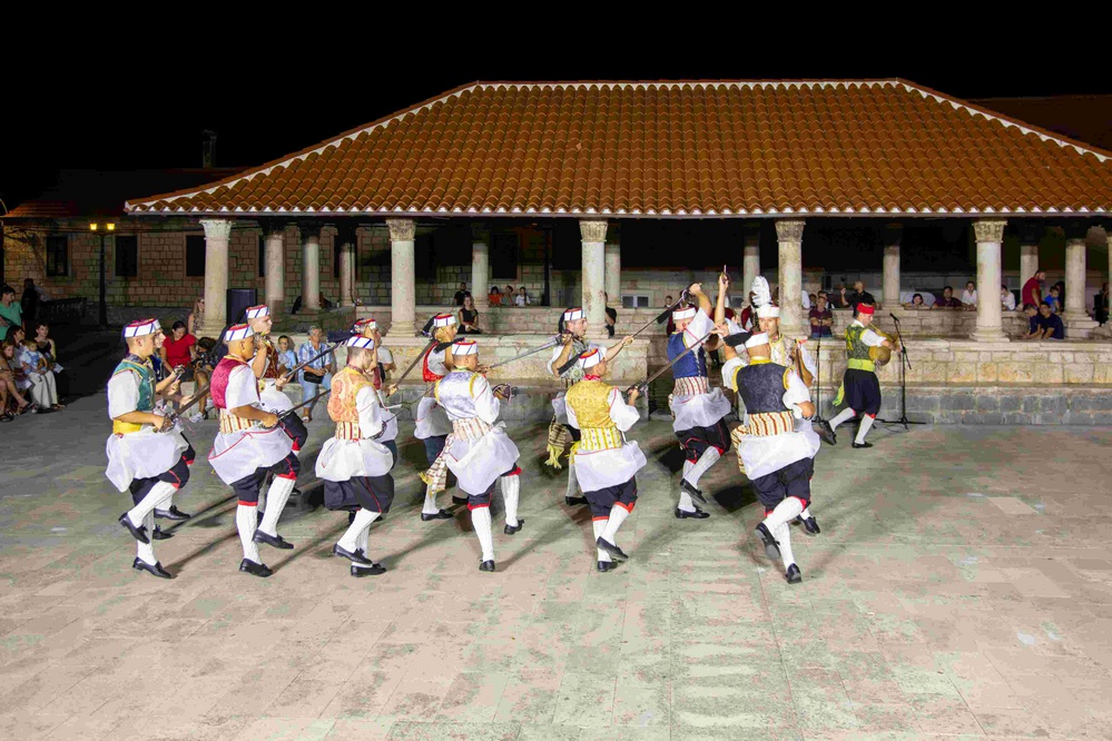 Vrhunac večeri bila je, kao i uvijek, izvedba viteške igre Kumpanjija – ritualnog mačevalačkog plesa koji prikazuje vojnički duh i povijesnu borbenost otočana. Bez riječi, ali s preciznim pokretima pod zapovjedništvom kapitana publici su prenijeli stoljetnu priču o obrani otoka.