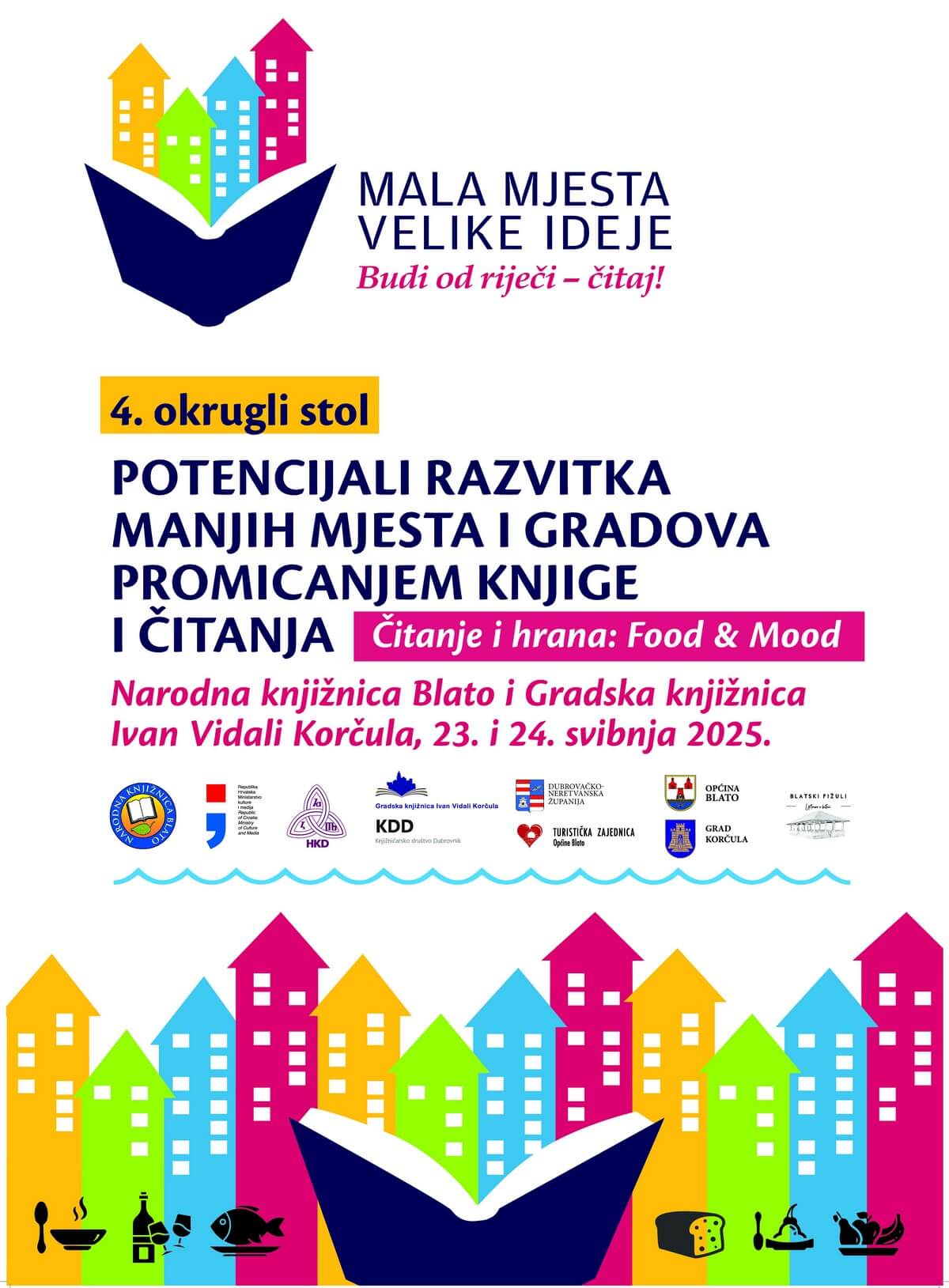 Narodna knjižnica Blato na otoku Korčuli 23. i 24. svibnja 2025. godine bit će domaćin 4. okruglog stola o potencijalima razvitka manjih mjesta i gradova promicanjem knjige i čitanja. Ovogodišnji skup donosi osvježen pristup temi, fokusirajući se na povezivanje kulture čitanja s gastronomijom, odnosno s autohtonim i specifičnim proizvodima pojedinih mjesta i regija.